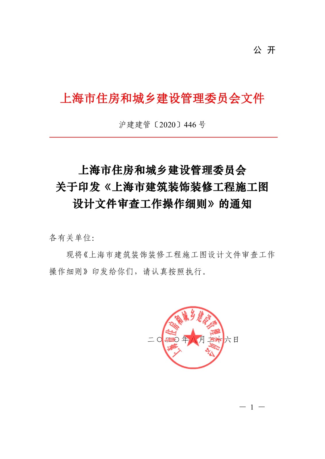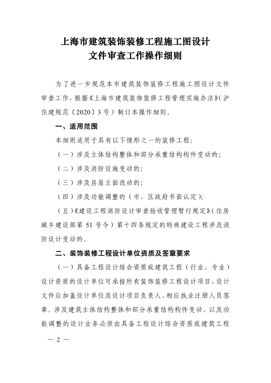关于印发《上海市建筑装饰装修工程施工图设计文件审查工作操作细则》的通知
