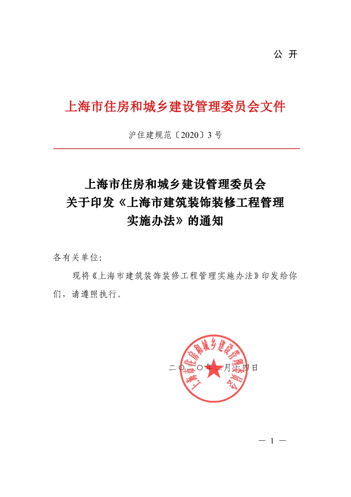 关于印发《上海市建筑装饰装修工程管理实施办法》的通知