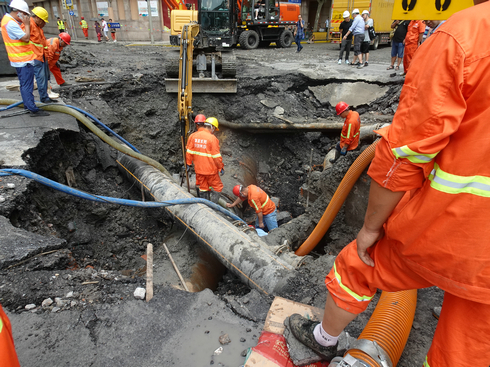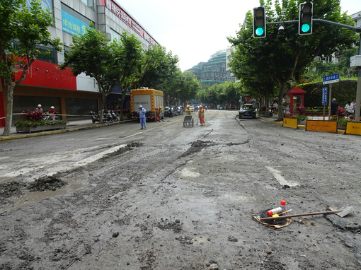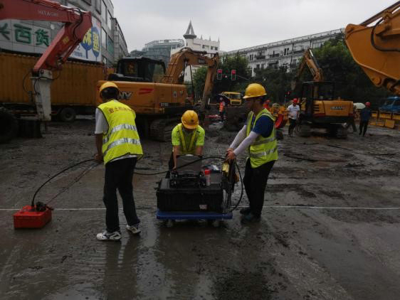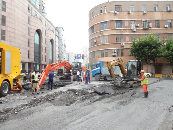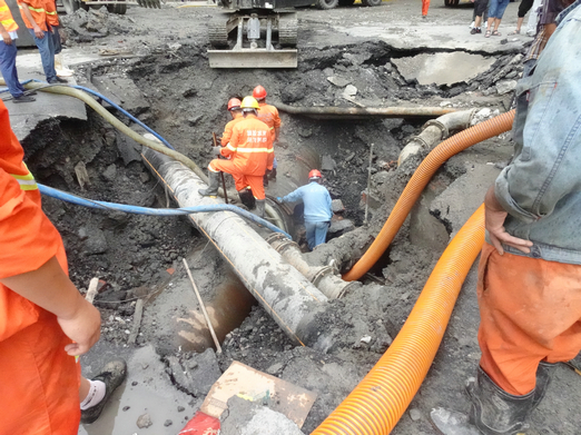 XX路自来水管爆裂,造成地面下方脱空、路面塌陷、邻近区域路面起鼓。受委托,我公司进行应急检测。现场分析出损坏范围,提出处理意见。